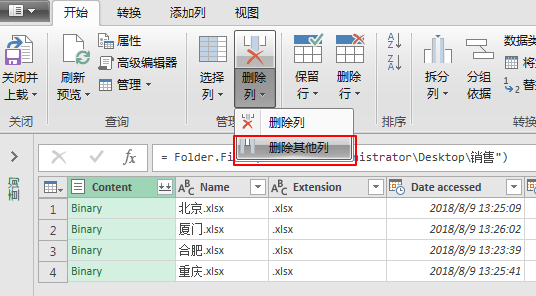 选择“Content”这一列,点击开始选项卡下,[管理列]组里“删除列”—“删除其他列”。