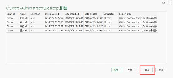 这个界面把文件夹的所有工作簿都列出来了,点击编辑。(在Excel2016的版本中“编辑”变成了“转换数据”)