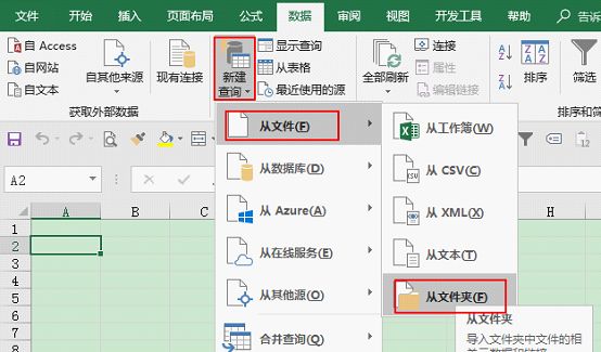 关闭文件夹里的文件,新建工作簿,点击数据选项卡下,[获取和转换]组里“新建查询”---“从文件”---“从文件夹”。