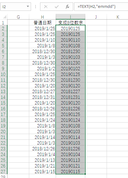 在某些时候,还会遇到将日期变成八位数字的情况,既然TEXT能把八位数字变成日期,那么再变回去当然没问题了: