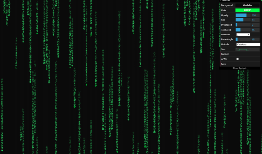 这个网站可以自动生成黑客帝国代码雨的效果,可以在右上角进行细微的参数设置包括,更改颜色等等~