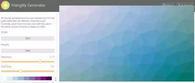 这是一个在线制作lowpoly背景的网站,我们可以直接调节低面的多个参数来实现我们想要的效果,操作非常简单,用来做ppt的背景非常棒。