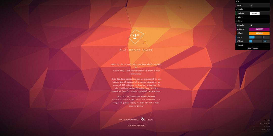 9. flat-surface-shader(网址:http://matthew.wagerfield.com/flat-surface-shader/)