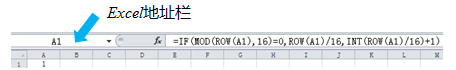 A15,编号= INT(ROW(A15)/16)+1= INT(15/16)+1=INT( 0.9375) +1=0+1=1