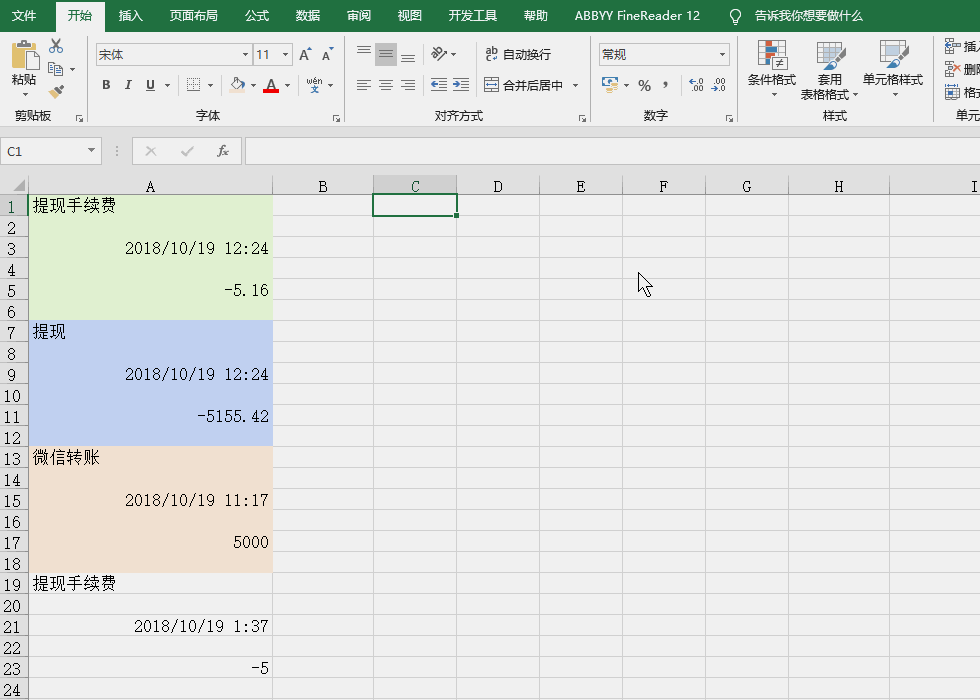 现在很多公司都在网上处理业务,因此会有很多从网络上导出或者直接从网页上复制粘贴得到的数据,例如下图(源数据过多,为了方便讲解,省略了部分源数据):