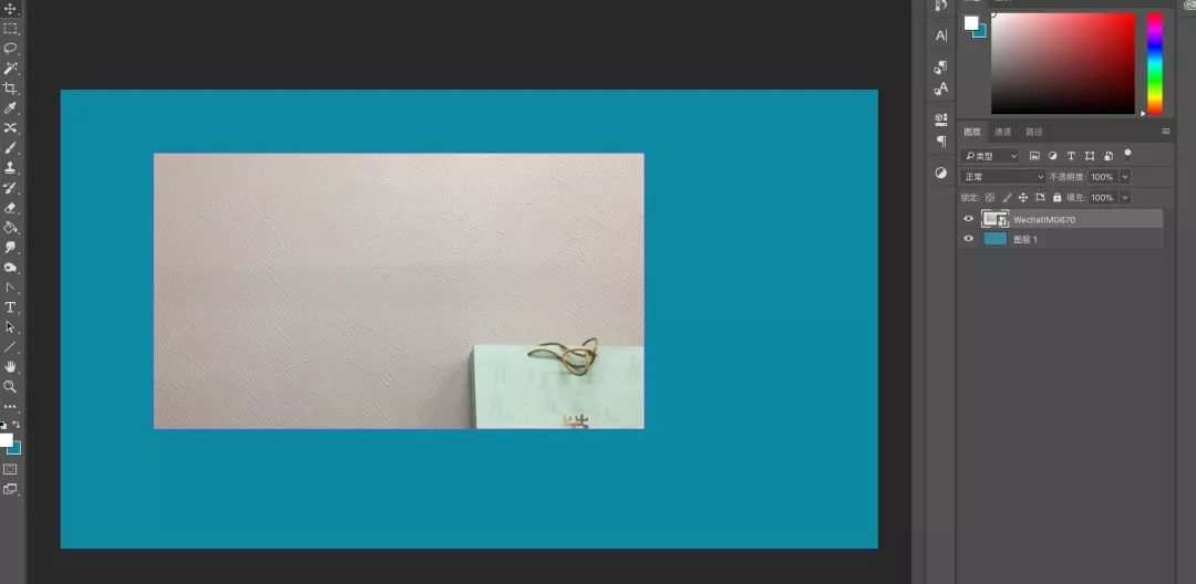 就是这种白浆刷的墙面,把照片文件通过微信传到电脑上,拖到桌面,再拖进PS,按ENTER确认放入:
