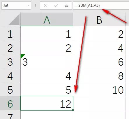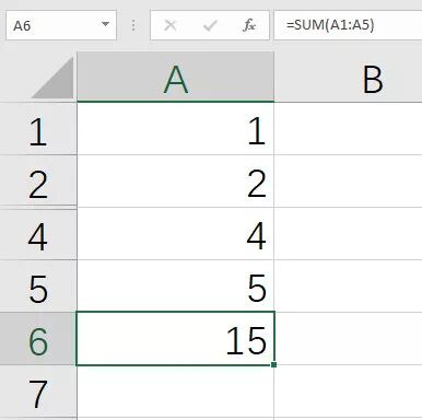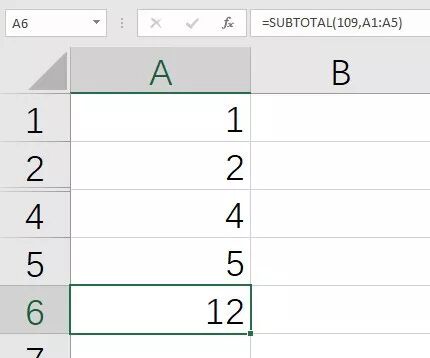 有的朋友会问:如果这个隐藏行需要保留,不能删除,又该怎么汇总呢?SUBTOTAL函数可以满足需要!比如当前这个例子,我们在单元格A6中输入公式“=SUBTOTAL(109,A1:A5)”,就能得到想要的结果,如图3所示。
