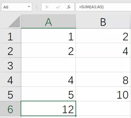 如果中间出现了空单元格、空行,同样阻碍自动求和,如图5所示。