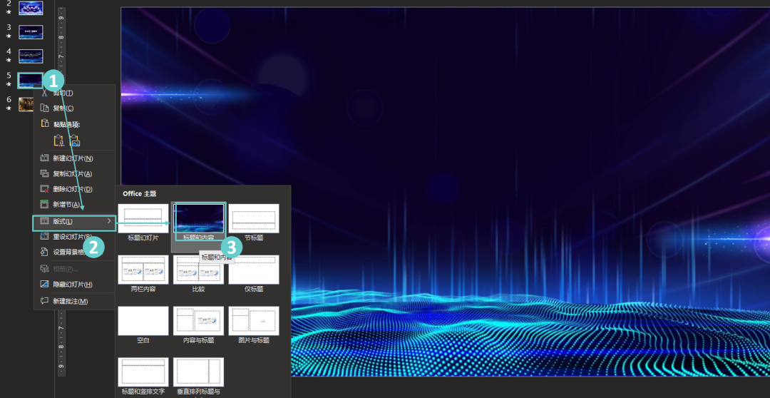 在普通界面的最左侧导航缩略图的地方,随便点击空白处或新建页面后右键,选中带有视频的母版页,即可成功调用。
