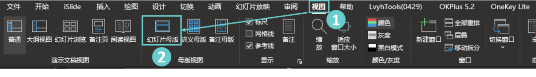 点击「视图」-「幻灯片母版」进入母版页操作界面。