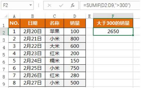 用法:=SUMIF(条件范围,要求,汇总区域)
