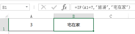 =IF(A1=7,"旅游","宅在家"),因为A1单元格是3,只放假3天,所以返回第二参数,宅在家。
