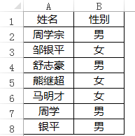 统计男性有多少人:=COUNTIF(B2:B8,"男")