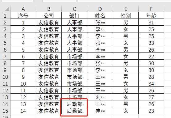完成设置后选中表格,Excel会出现一个下拉菜单,此时的下拉菜单中便有了后勤部。可以直接输入后勤部或者直接在下拉菜单中选择后勤部。