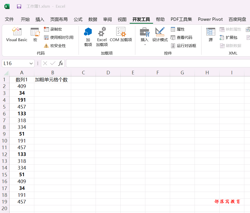 然后,返回Excel工作表,输入公式:=CountBold(A2:A19),就可以快速统计出加粗单元格个数。