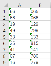 小伙伴的数据如下图,A列保存的是文本格式的二位数,B列保存的是文本格式的三位数。