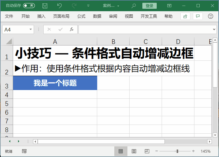 细心的小伙伴会发现,上一个案例的表格会根据不同的数据增减边框线,这个可不是FILTER函数自带的功能,实际是花花通过事先设置了条件格式才会有这个效果哈。操作步骤如下图: