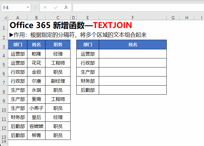 TEXTJOIN函数是一个通过分隔符连接符合条件的单元格内容的函数,他的语法结构如下图: