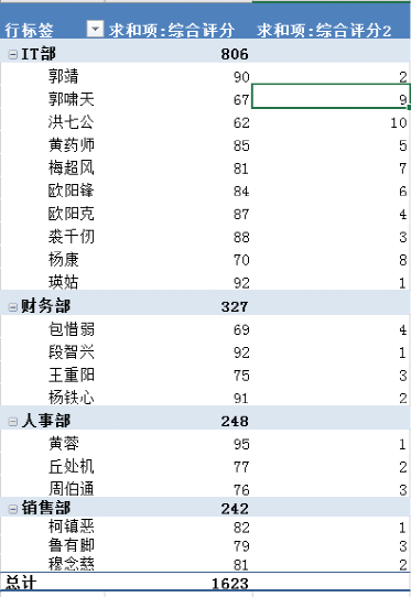 这样,就可以得到最后的结果,得出最终的组内综合评分排名了。
