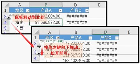 skill 3:对于已经隐藏或被筛选排除的行或列,我们也可以用拖拉边线的方式让这些隐藏的行列“现身”!