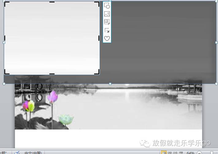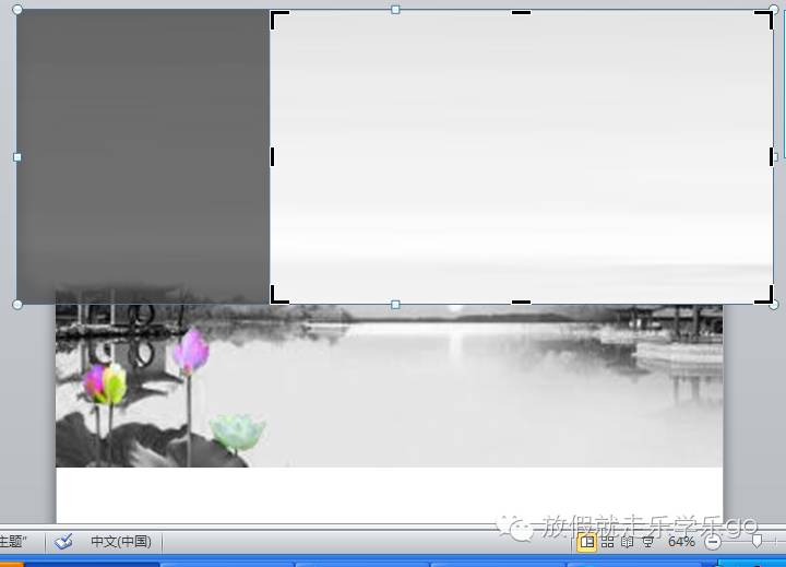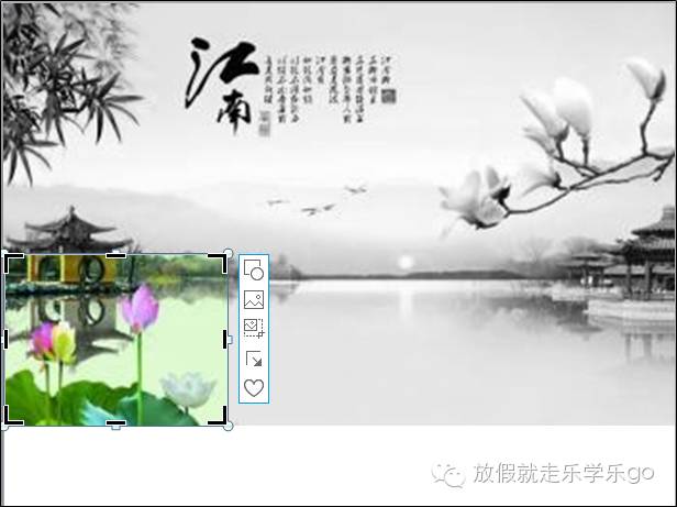 6,裁剪彩色图片,只保留左下部有荷花的部分,然后点击”压缩图片“确认剪裁。