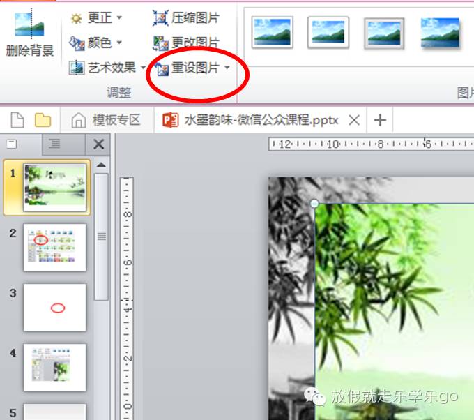 4,将复制的图片恢复为原色:双击复制的灰度图片,点击”重设图片“,恢复图片原本色彩。