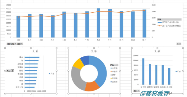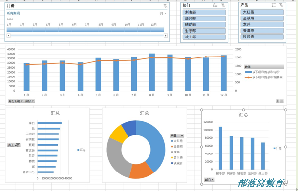 1.动态透视图其实就是以生成透视表为基础,用切片器做数据关联,再辅以报表美化工具,最终就能呈现出一个“大屏”动态报表的效果。