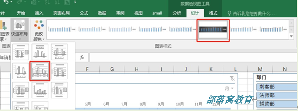 Excel本身提供了很多的报表布局、样式、配色供我们选择,随意点击一张透视图,菜单栏就会增加一个“数据透视图工具”,大家可以选择自己喜欢的美化方案。