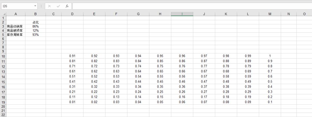 Step 01 在单元格内输入0.01-1的数据,如下图所示。
