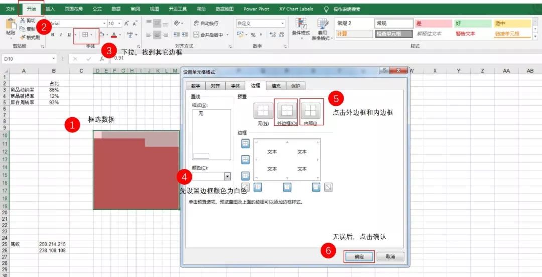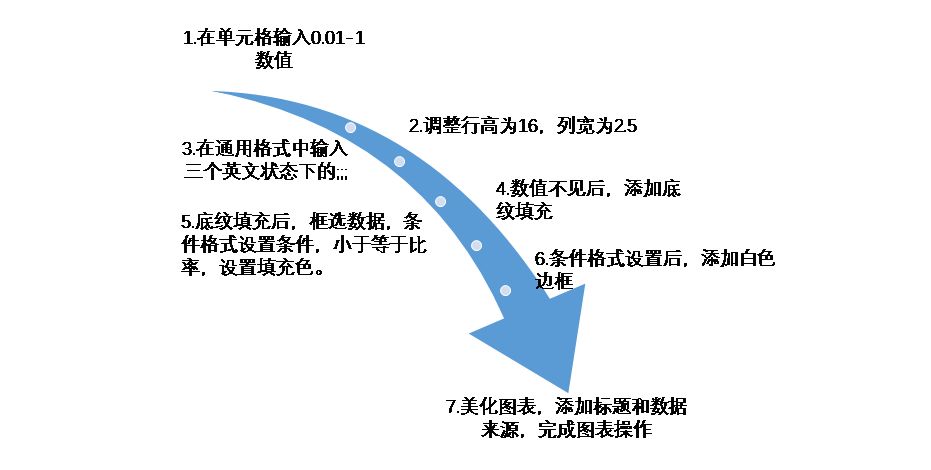 在表格中输入0.01-1的数值,用条件格式来给图表填充颜色。用边框线来隔开各单元格内的色块,然后美化图表,就可以完成整个图表的制作。制作思路如下图所示。