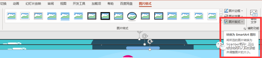 选择“图片格式”——“图片版式”,将所选的图片转换为SmartArt图形