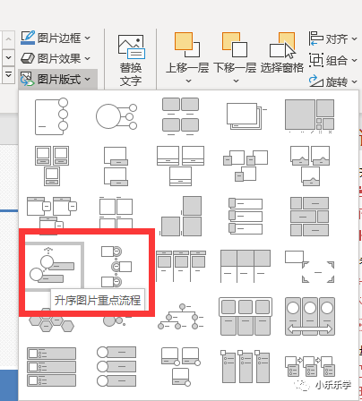步骤3:选择自己需要的版式,此处选用的是“升序图片重点流程”