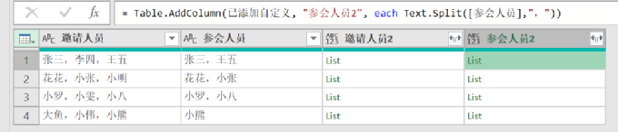 邀请人员和参会人员这两列我们都进行分割了,此时大家可以看到PQ界面中有4列数据。