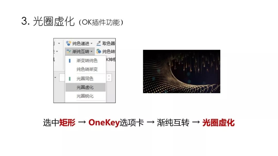 选中矩形,点击OneKey选项卡→渐纯互转→光圈虚化
