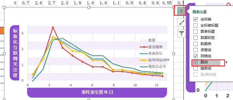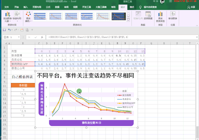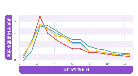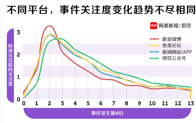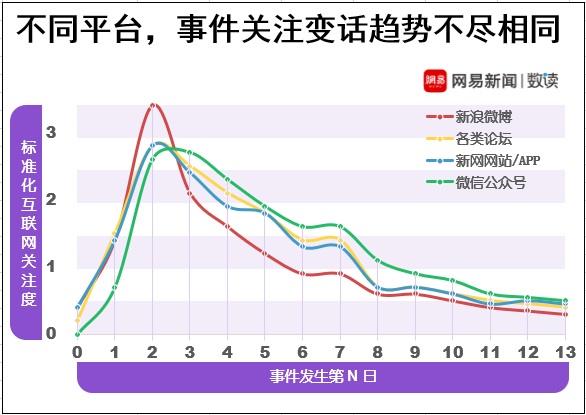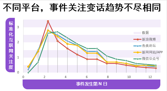 这个图表表示的,互联网事件关注度在不同渠道,随着时间变化的关注度变化