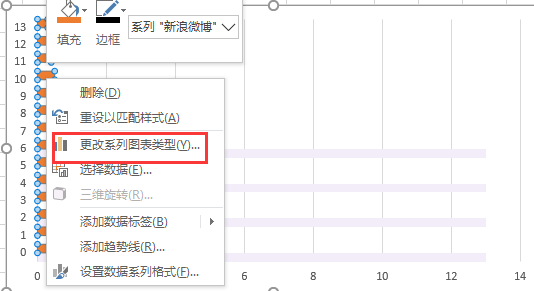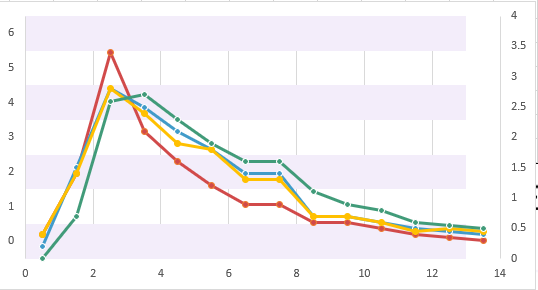 右侧y轴坐标最大间距调整为1,范围改为0-3.5,x轴坐标范围改为0-13,左侧y轴坐标取消,右侧调整到左边来