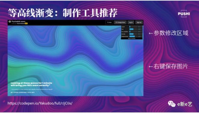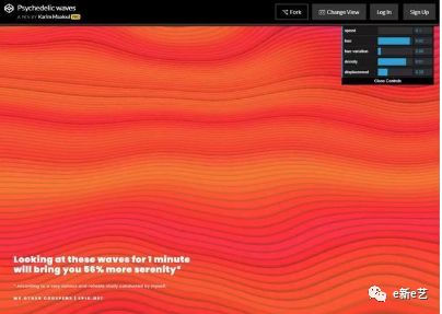 这是一个会产生波浪纹理背景的工具,而且还会与你的鼠标互动,你可以随意调解工具的颜色配比,然后用鼠标滑动来控制波浪形状。