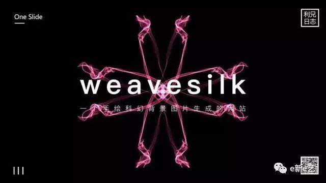 weavesilk是一个光线的绘画网站,可以用鼠标绘制一些简单但是很科幻的图,支持直接保存为jpg,用做PPT的背景非常的合适~