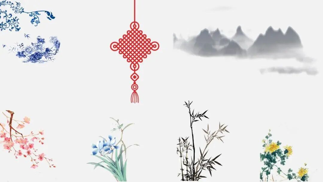比如,说到中国风,我们会想到青花瓷、水墨画、中国结、梅兰竹菊等等元素: