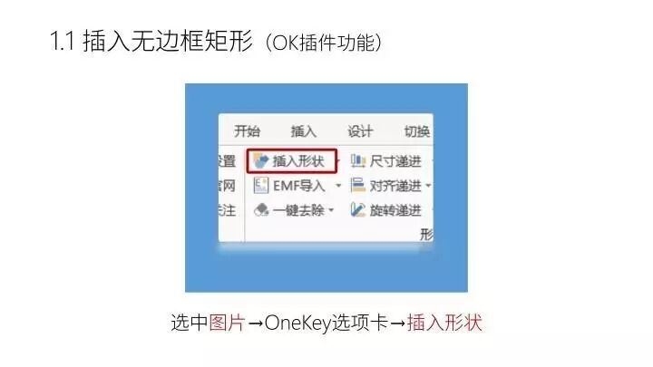 首先,选中图片,使用OK插件的“插入形状”插入一个与所选图片等大的矩形