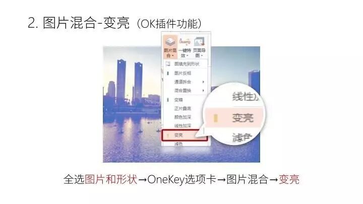 全选图片和形状,使用OK插件的“变亮”混合功能