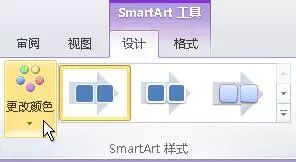 2. 单击SmartArt图形。——在“SmartArt工具”下“设计”选项卡上的“SmartArt样式”组中,单击所需的SmartArt样式。