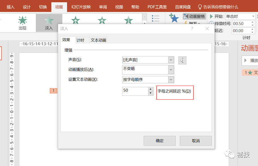 如果想改变文字依次出现的速度,可以在【字母之间的延迟】中更改数值,数值越大,文字出现的就越慢哦~