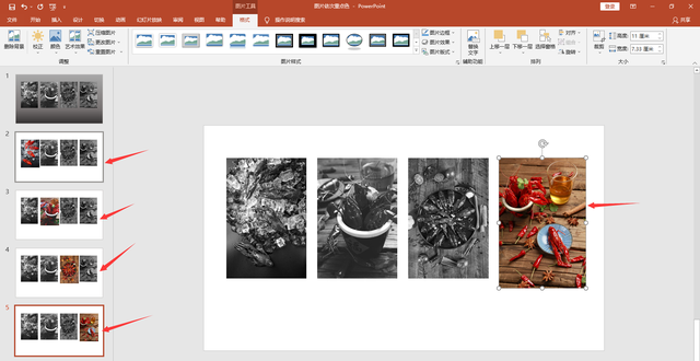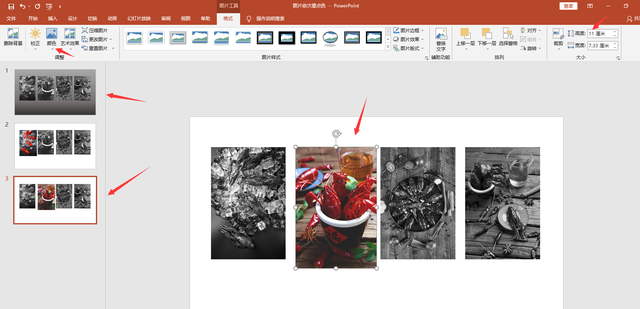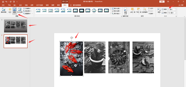 メ点选第一张图片,适当增大图片尺寸,颜色更改为彩色。メ