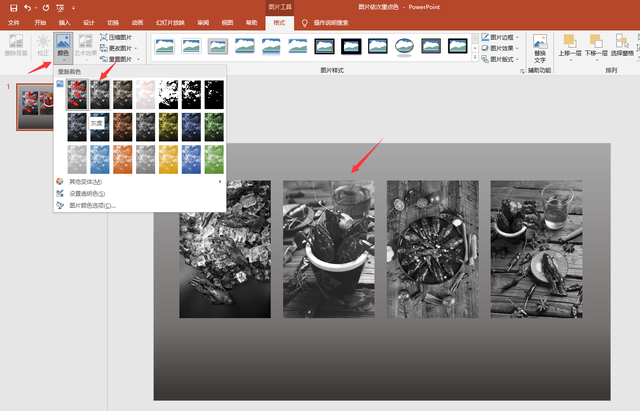 メ框选所有图片——格式——颜色——灰色,宣布显示为灰色。メ