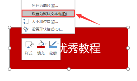 2、然后在文本框上右击鼠标,选择”设置为默认文本框”命令。完成设置,以后我们每次插入的文本框都将是当前相同的格式,不用再设置字体及文本框格式了。
