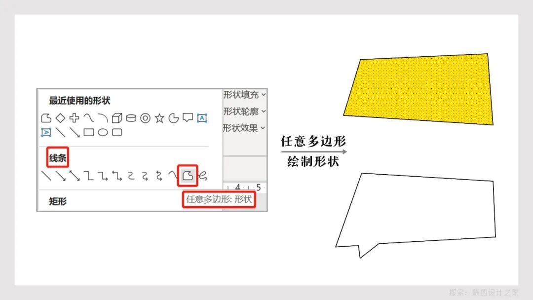 这个形状不是规则的形状,但是我们同样可以使用PPT中的功能进行绘制。
