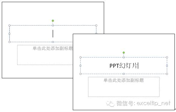 步骤2 幻灯片中包含上、下一共两个带有虚线边框的矩形,这两个都是占位符。单击上方的占位符内部,在占位符中会显示一条闪烁的黑色竖线(此线被称为“插入点”),然后输入所需的内容,如图3-1所示。