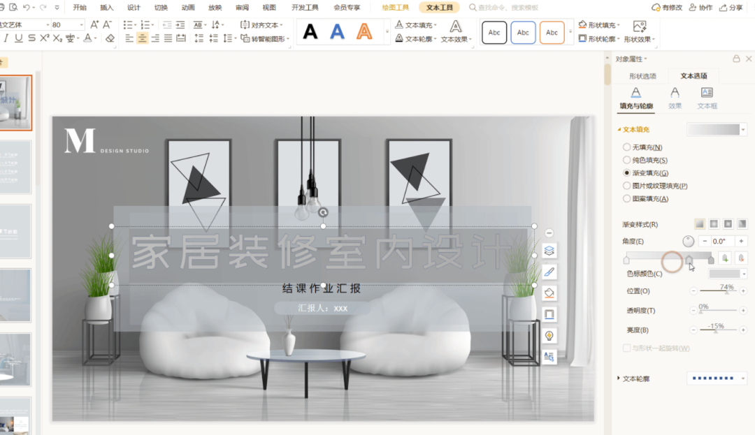 在制作结课汇报演示幻灯片时,通过调整幻灯片文稿的字体样式可以让演示稿变的更有质感。