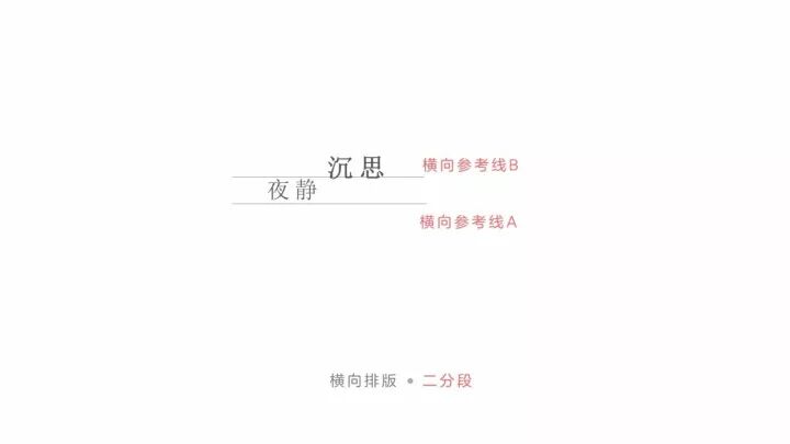 不同于A中使用单一的文本框,这里使用多个文本框形成位置上的间距化。所谓二分段,即借用两个平行横向参考线,将文本框排布。